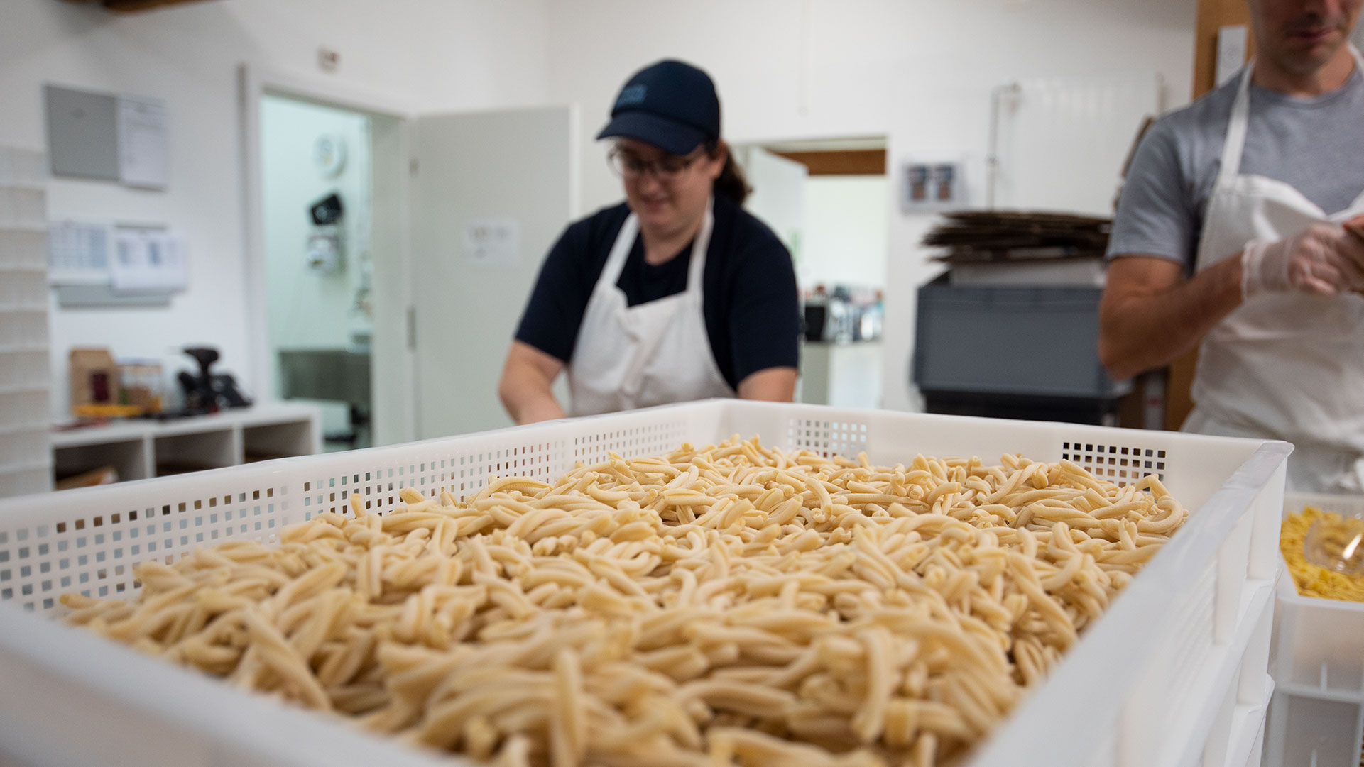 «Pasta sociali» kombiniert von allem das Beste: Soziales Engagement, kulinarische Qualität und nachhaltige Zutaten aus der Region. Wir verarbeiten die hochwertigen Zutaten schonend zur fertigen Pasta.